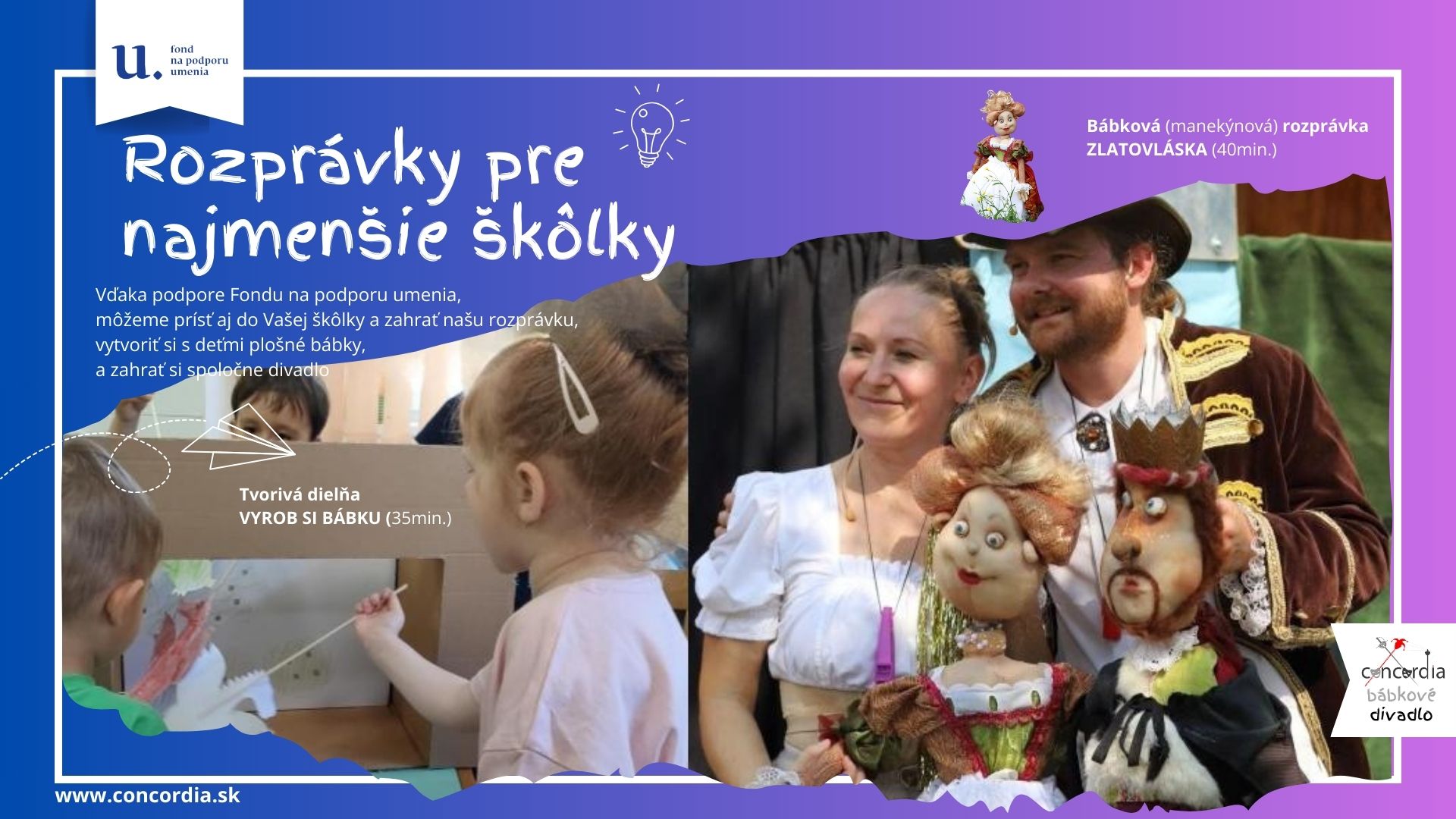 Bábkové divadlo Zlatovláska na motívy Pavla Dobšinského predstaví divadlo Concordia. Činoherno bábková rozprávka o pýche, múdrosti a láske.