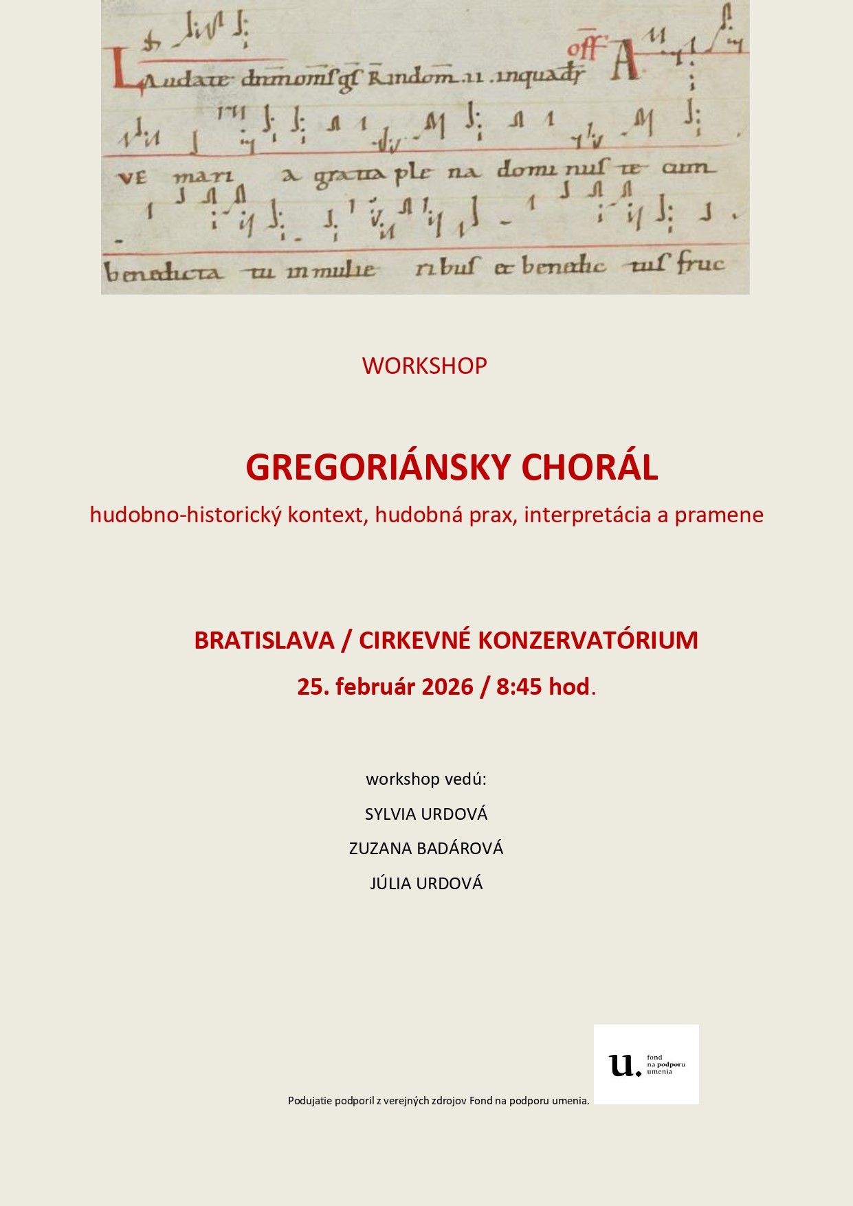 WORKSHOP: GREGORIÁNSKY CHORÁL / hudobno-historický kontext, hudobná prax, interpretácia a pramene Bratislava- Cirkevné konzervatórium / 25.2.2026 / 8:45 hod.