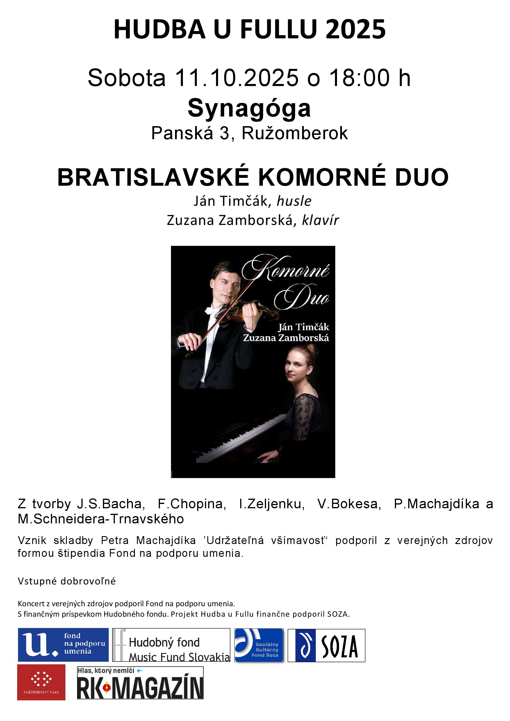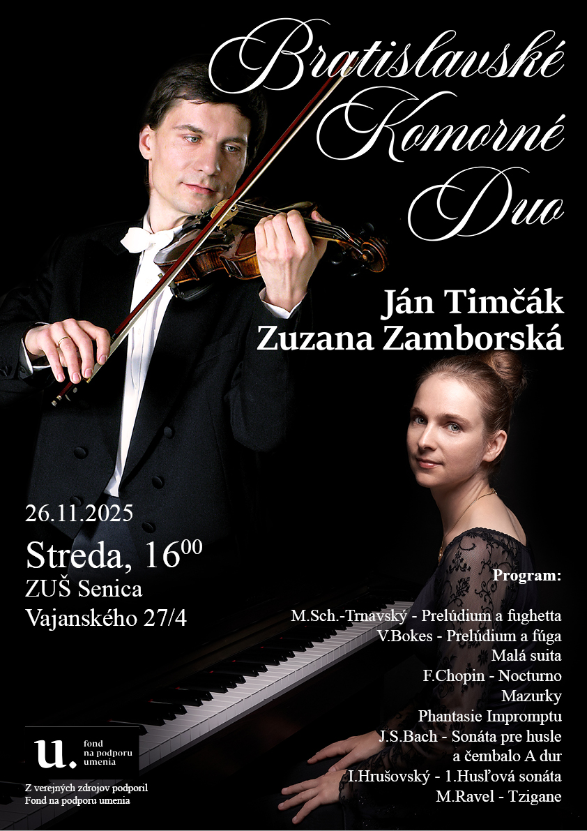 Premiéra skladby 'Udržateľná všímavosť' pre husle a klavír. Interprétmi budú huslista Ján Timčák a klaviristka Zuzana Zamborská.