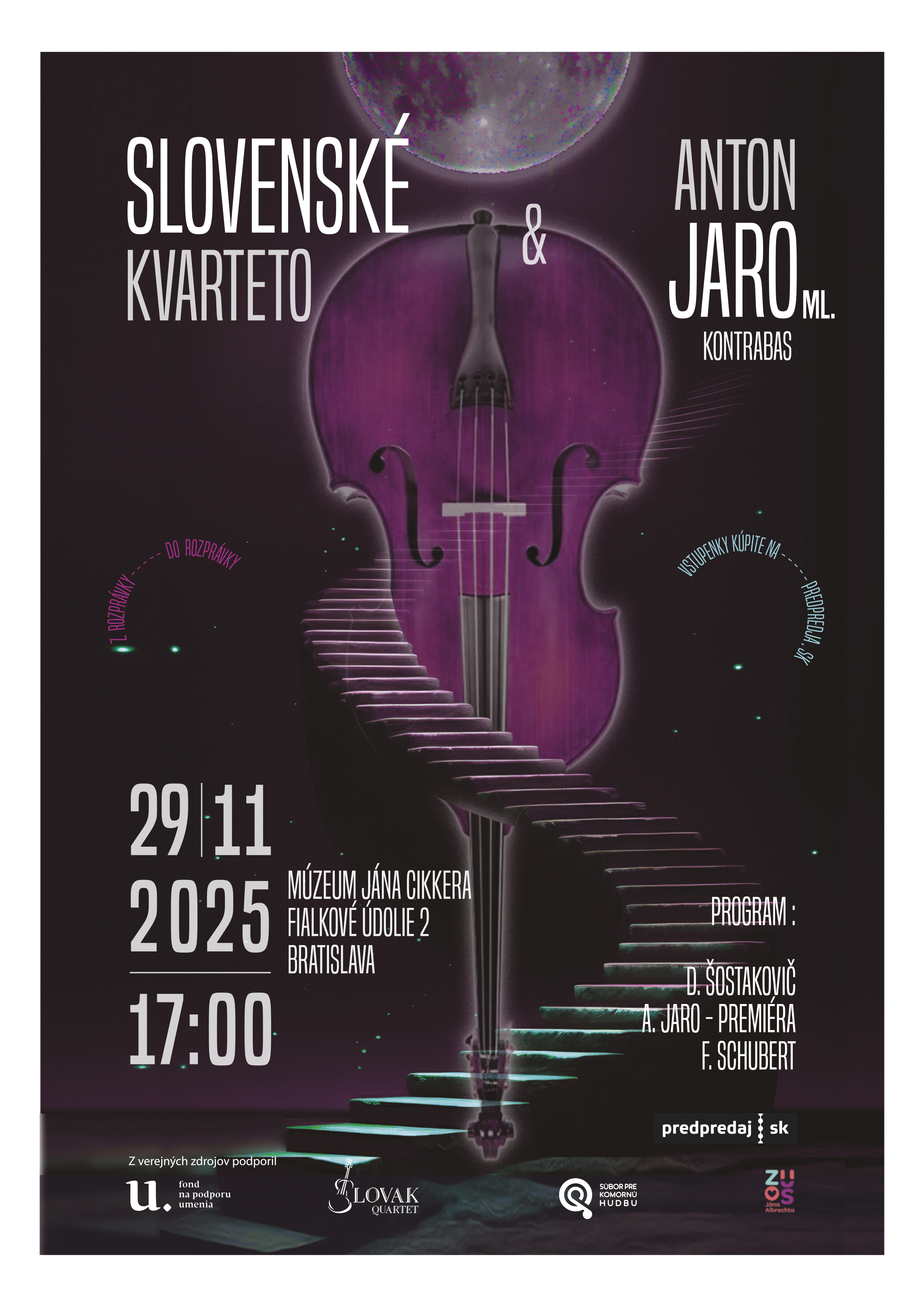 Koncert Slovenského kvarteta a Antona Jara ml. - kontrabas. 29.11.2025 o 17:00 hod. Múzeum Jána Cikkera, Bratislava