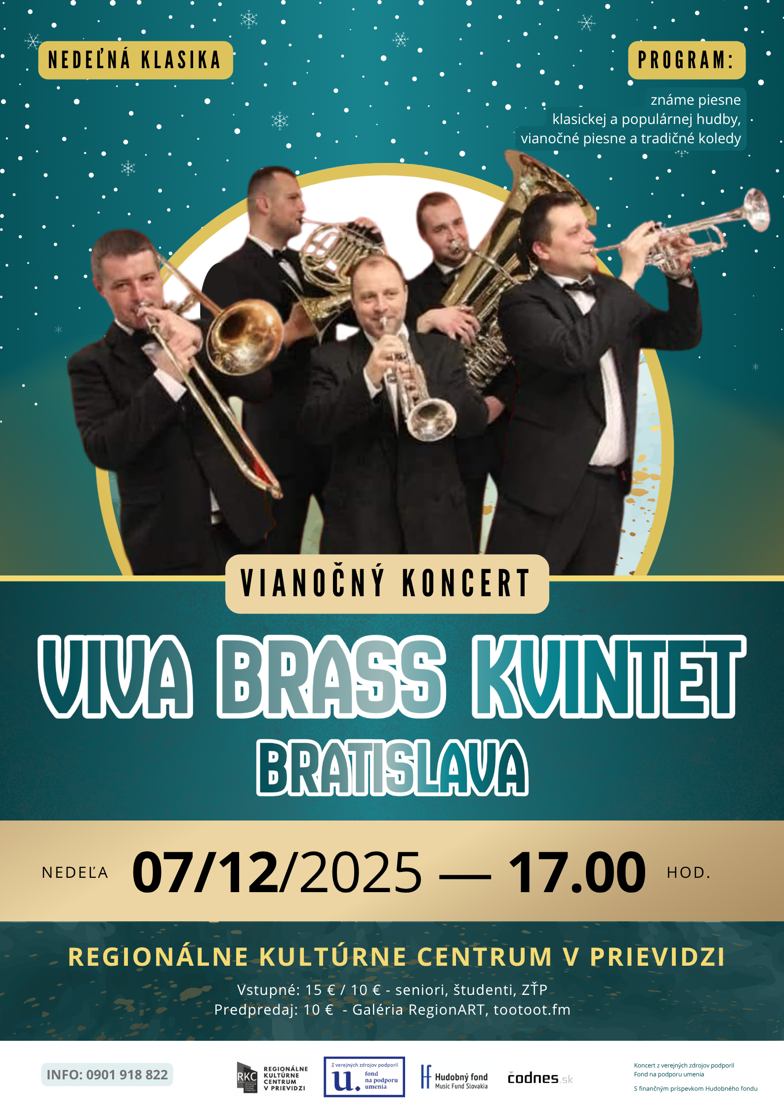 Vianočný koncert dychového kvinteta Viva Brass kvintet Bratislava v rámci koncertného cyklu "Nedeľná klasika".