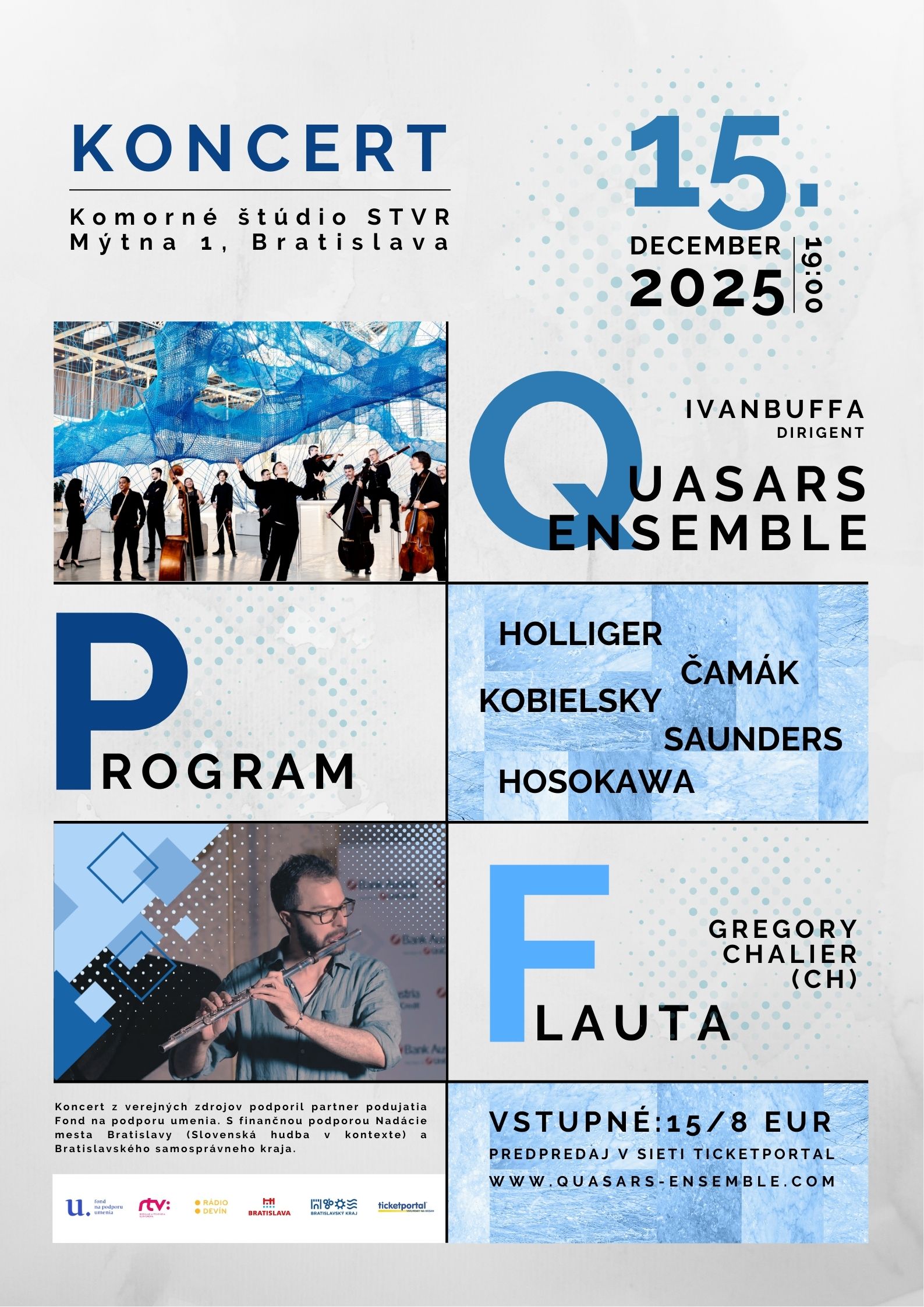 Projekt Cyklus koncertov Quasars Ensemble je zameraný na prezentáciu pôvodnej slovenskej hudobnej tvorby, slovenského interpretačného umenia, ako aj prezentáciu u nás málo hrávaných významných diel kľúčových skladateľských osobností 20. a 21. storočia. Interpretom je komorný súbor Quasars Ensemble, ktorý za 15 rokov svojej existencie a vďaka medzinárodnému umeleckému kreditu privíta na koncertoch významné skladateľské a interpretačné osobnosti.