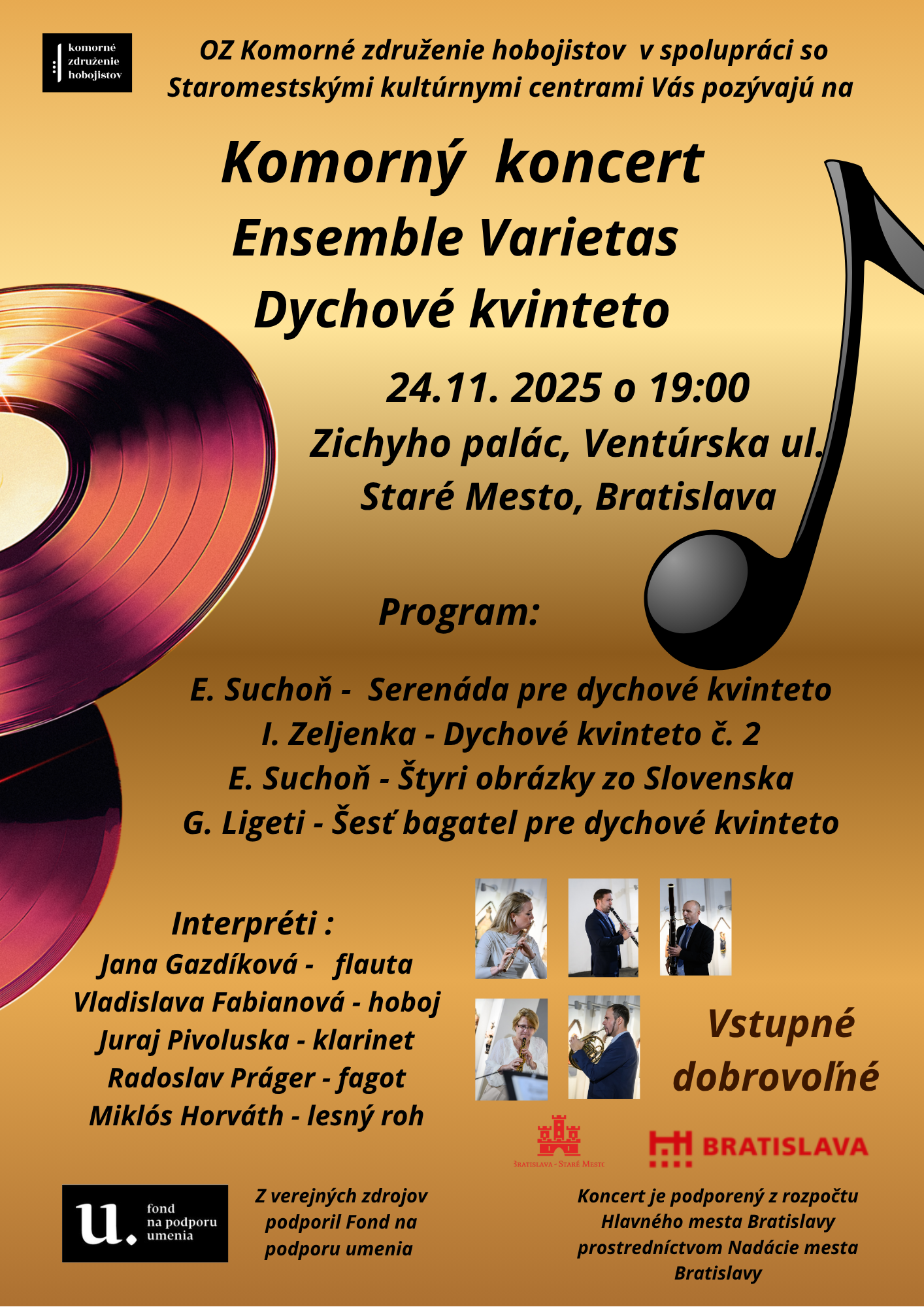 Komorný koncert - Ensemble Varietas - Dychové kvinteto - E. Suchoň, I. Zeljenka, G. Ligeti Zichyho palác, 24. 11. 2025, 19:00