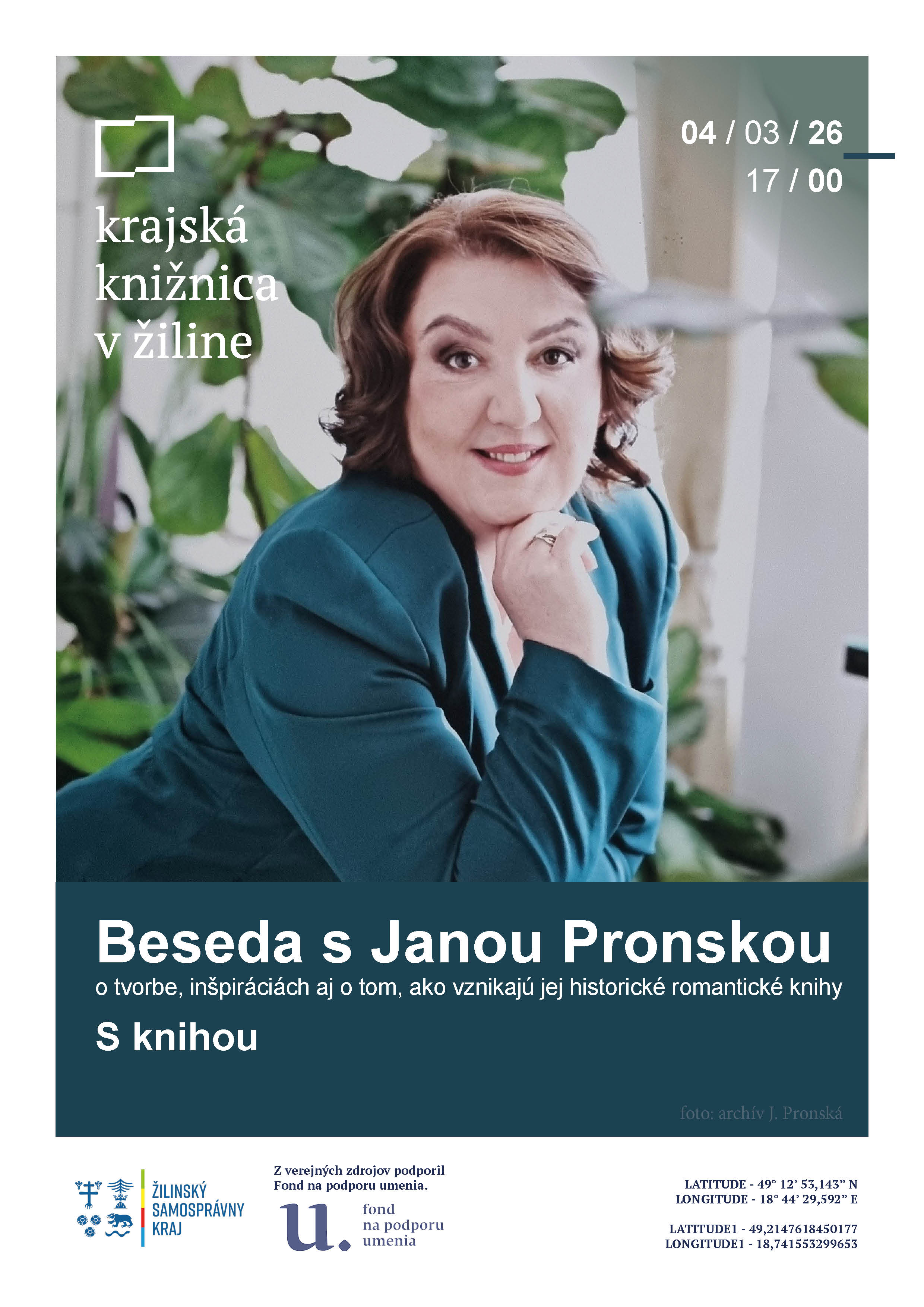 Literárna beseda s umelkyňou / prezentácia nových kníh spojená s a autorským čítaním