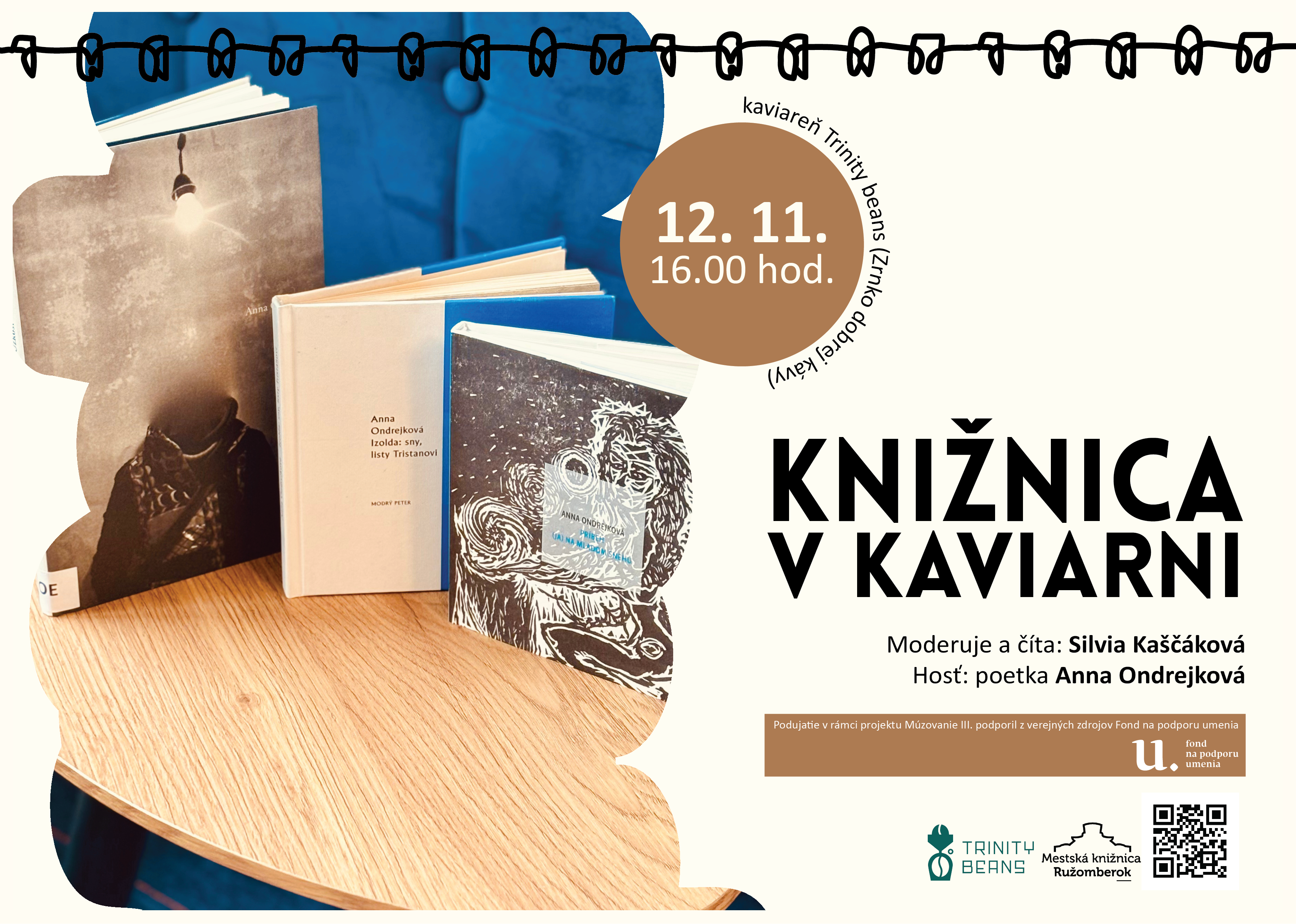 KNIŽNICA V KAVIARNI. Literárny večer s poetkami Annou Ondrejkovou a Silviou Kaščákovou. Budeme čítať s najnovšej zbierky básní Anny Ondrejkovej - Zimostrasť.