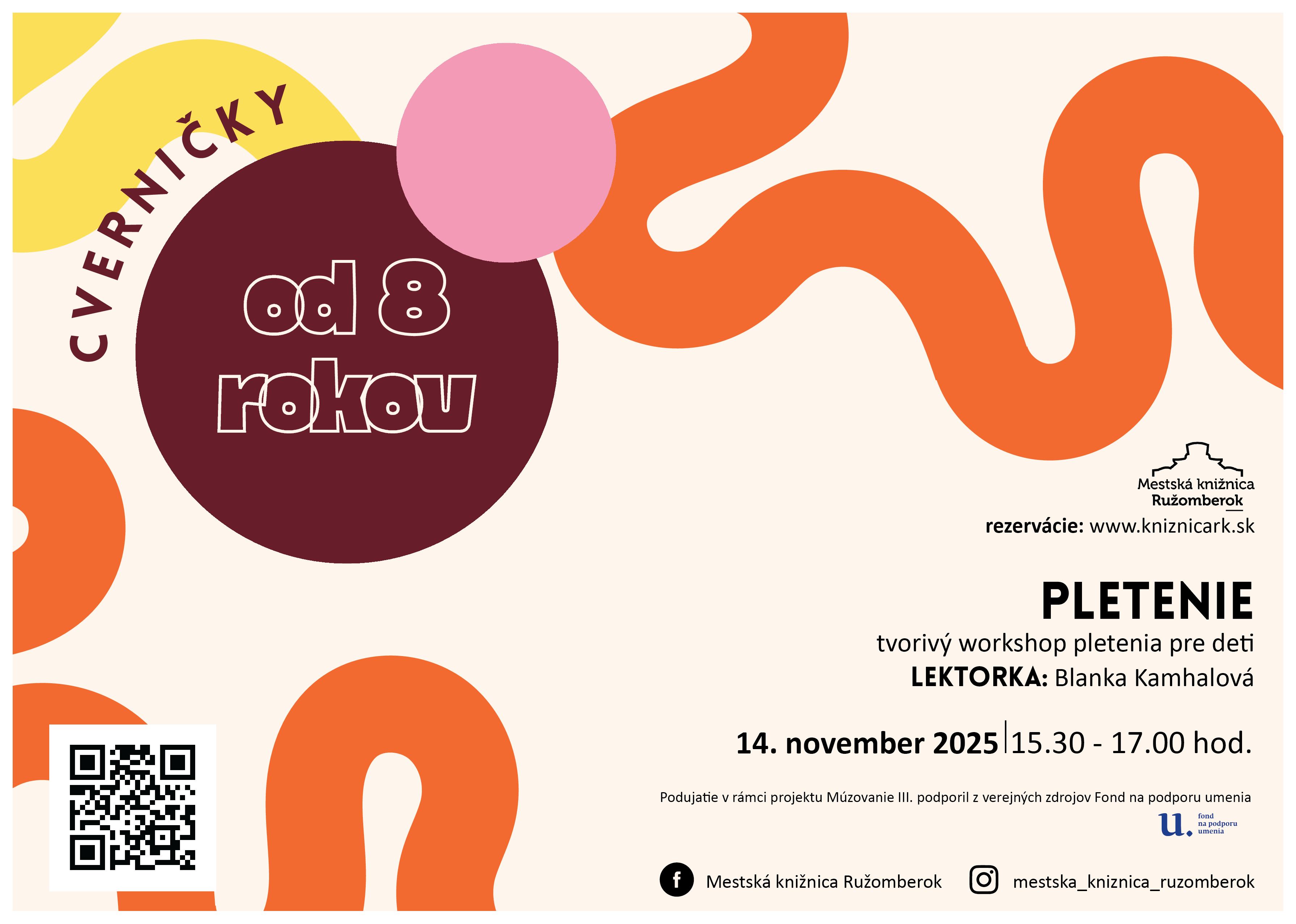 CVERNIČKY. Séria kurzov ručných prác, kde si deti hravou formou precvičia svoje šikovné rúčky. Cieľom stretnutí je rozvoj jemnej motoriky dieťaťa, zdokonalenie zmyslového a priestorového vnímania, poznávanie tvarov a smerov.