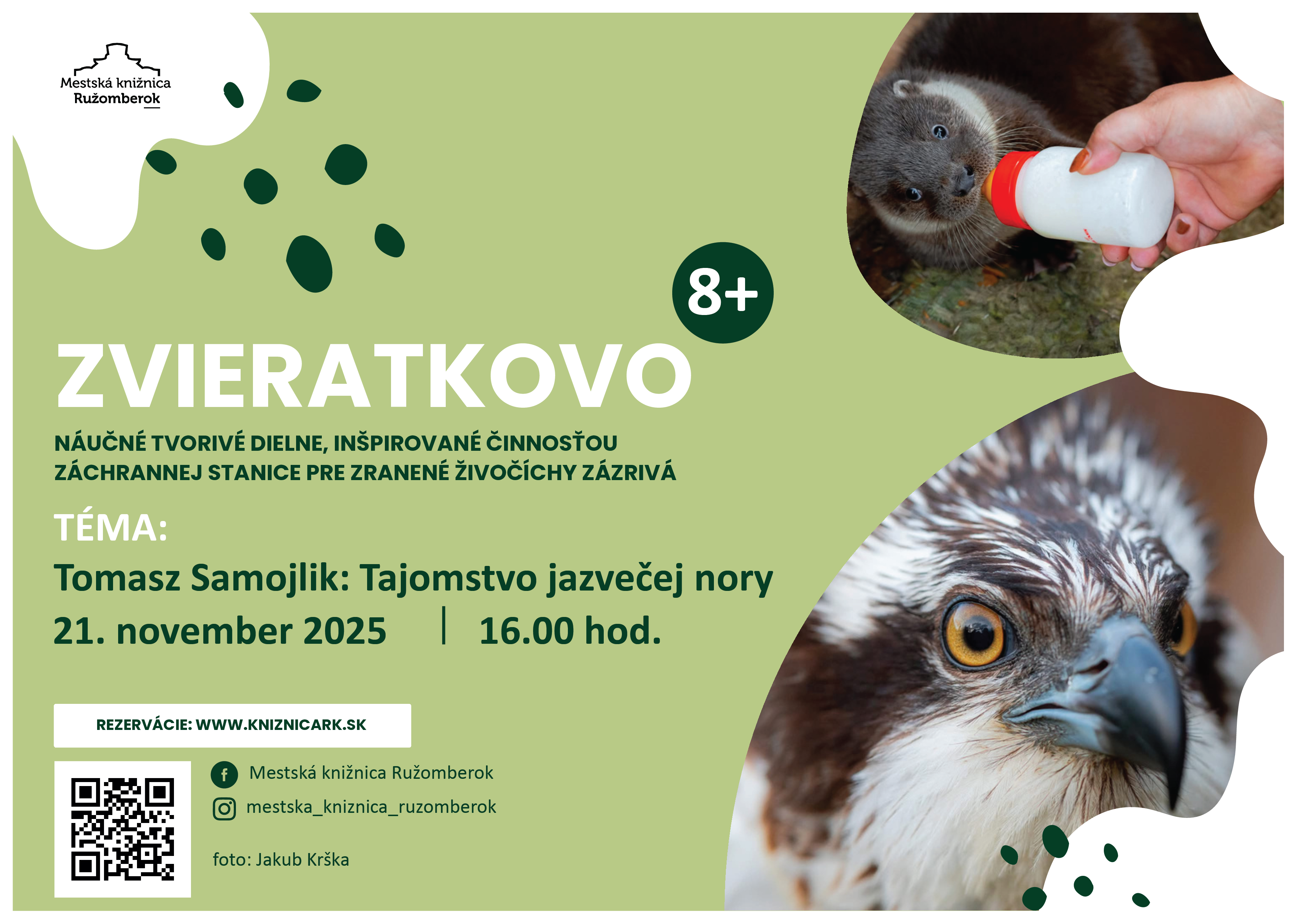 ZVIERATKOVO. Náučné tvorivé dielne pre deti, inšpirované činnosťou záchrannej stanice pre zranené živočíchy Zázrivá