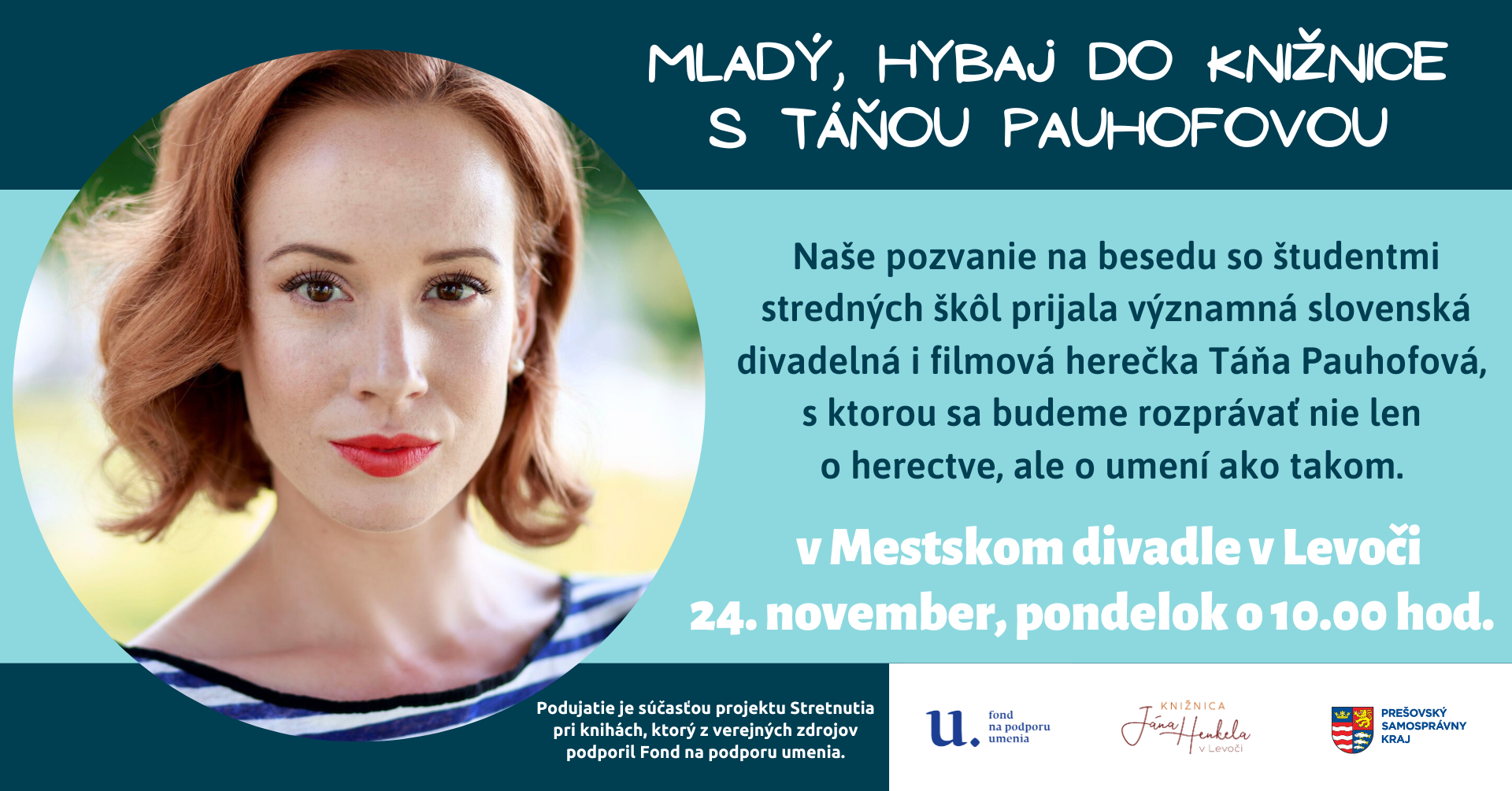 V rámci cyklu podujatí Mladý, hybaj do knižnice! sme pre študentov stredných škôl pripravili stretnutie s významnou slovenskou divadelnou i filmovou herečkou Táňou Pauhofovou.