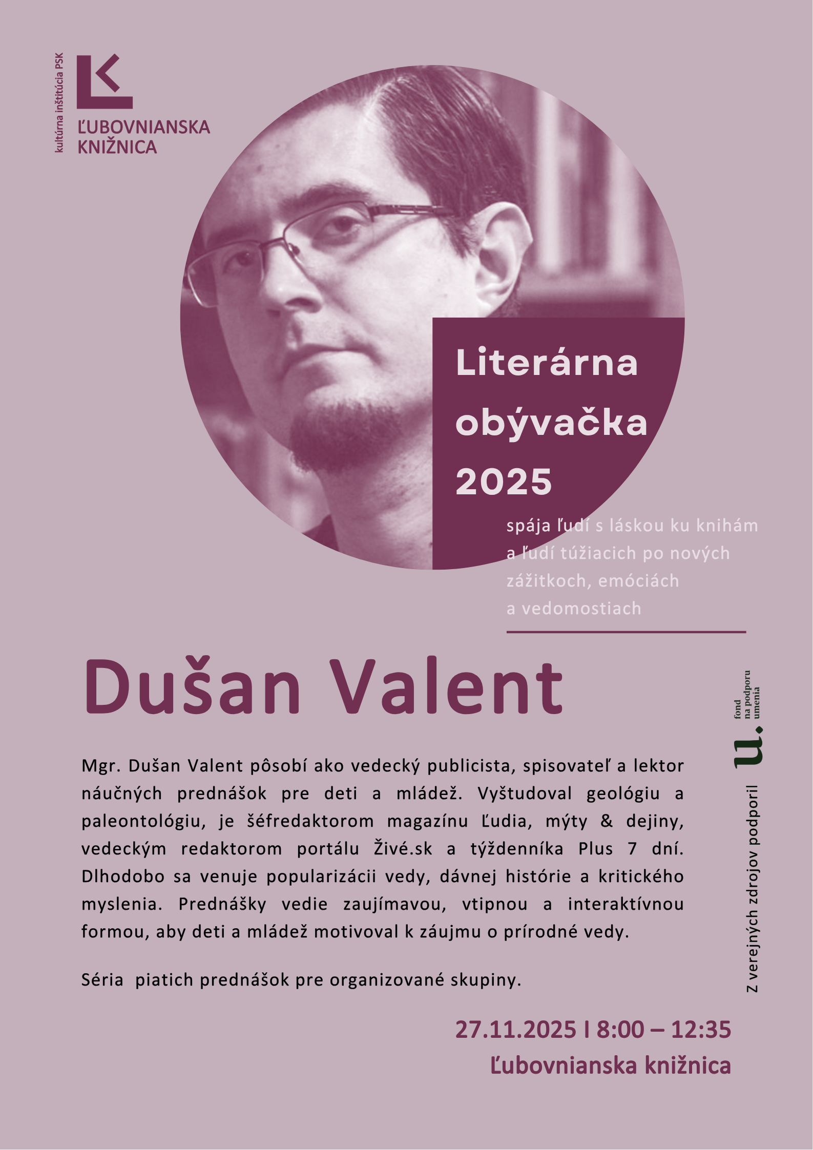 Prednášky s vedeckým publicistom, spisovateľom a lektorom náučných prednášok pre deti a mládež Dušana Valentom majú zaujímavou a vtipnou formou žiakov motivovať k záujmu o prírodné vedy, popularizovať ich a viesť žiakov ku kritickému mysleniu.