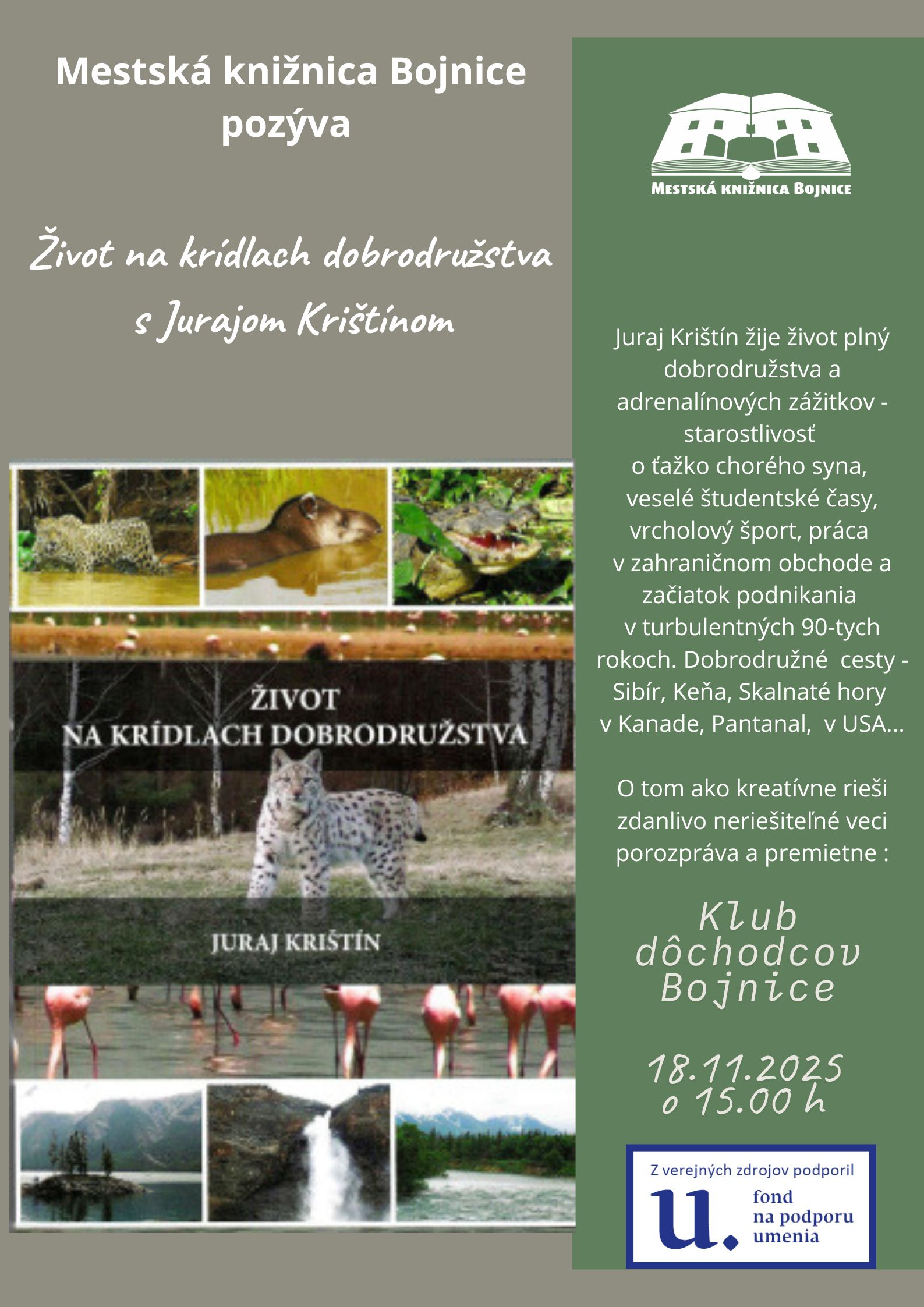 Literárny večer s Jurajom Krištínom o jeho živote plnom dobrodružstva a adrenalínových zážitkov spojený s premietaním fotografií z dobrodružných ciest.