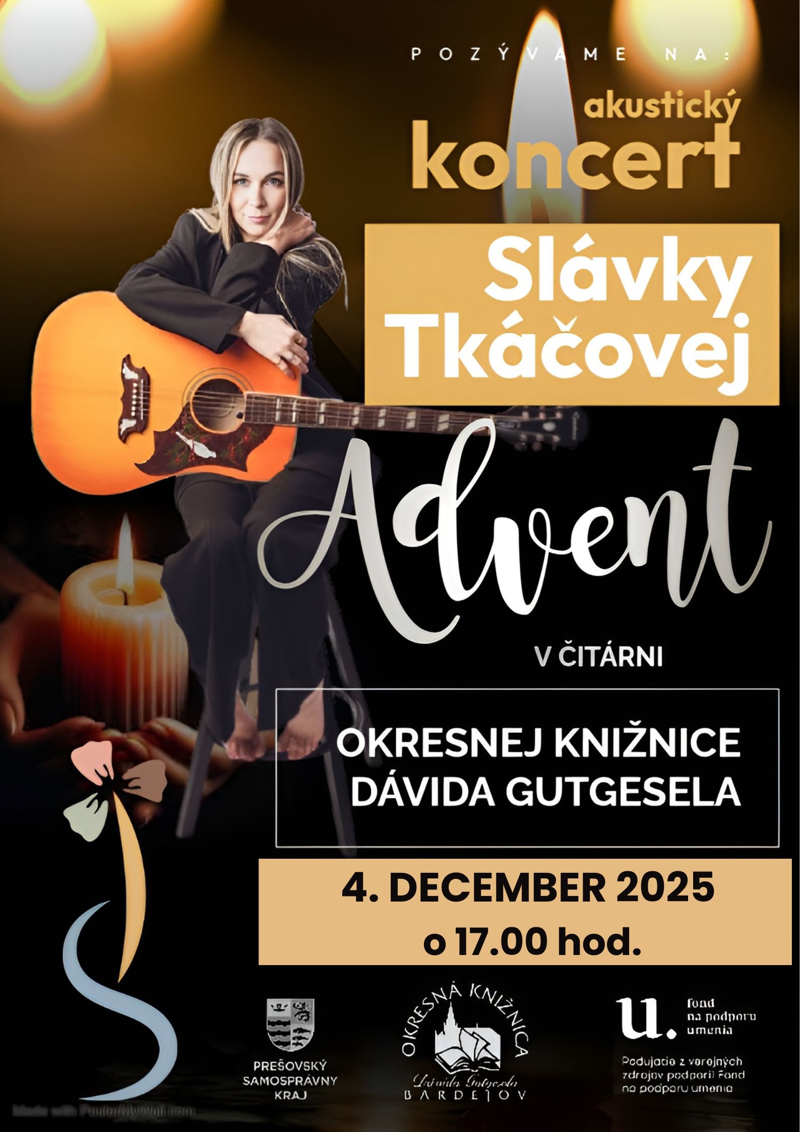 Adventný akustický koncert s predvianočnou atmosférou a jedinečný hudobný zážitok v podaní talentovanej speváčky a hudobníčky Slávky Tkáčovej, rodáčky z Bardejova v Okresnej knižnici Dávida Gutgesela.