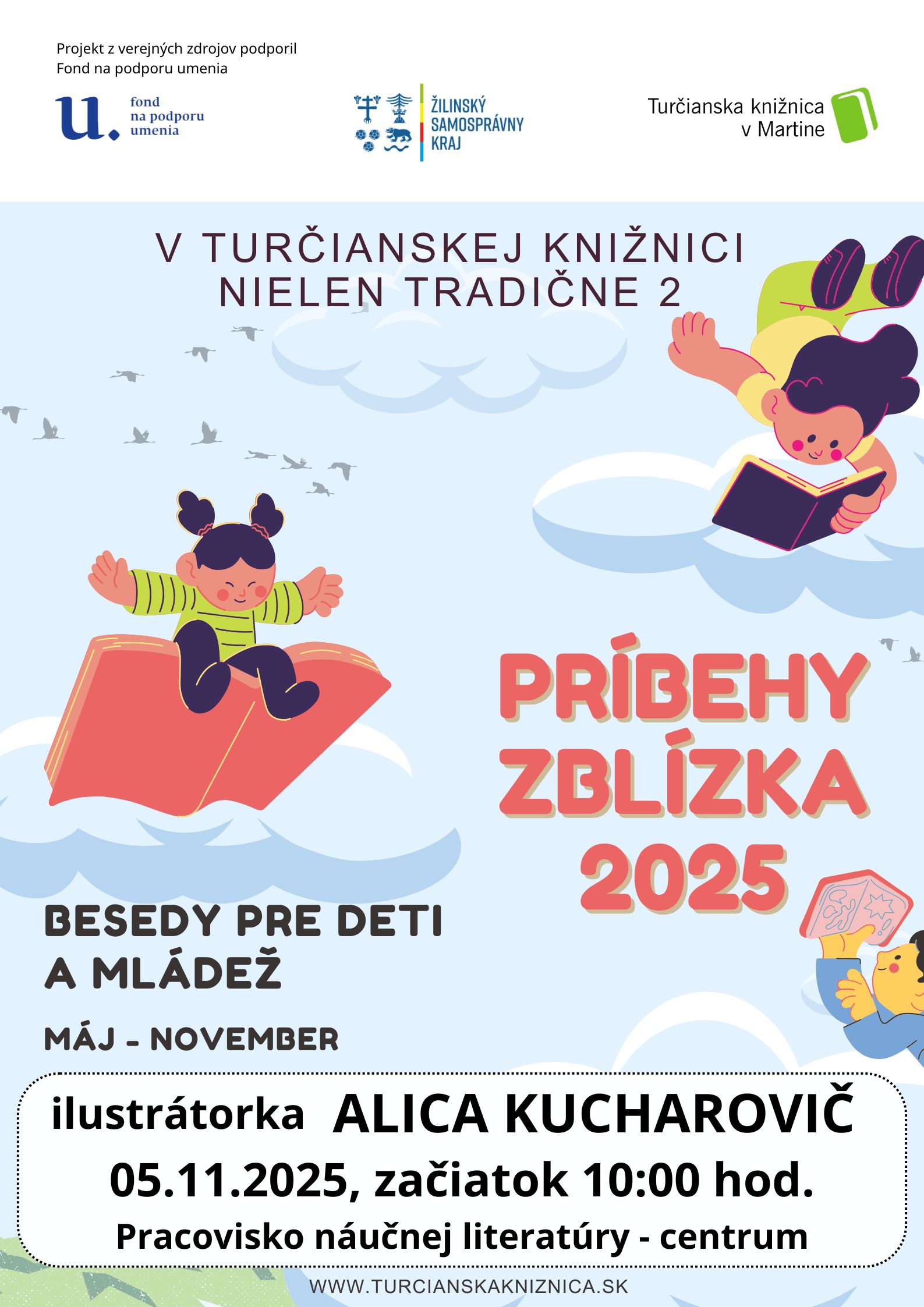 V rámci projektu „V Turčianskej knižnici nielen tradične 2 – Príbehy zblízka 2025“, privítame dňa 05.11.2025 o 10:00 hod., v Turčianskej knižnici na pracovisku náučnej literatúry ilustrátorku Alicu Kucharovič.