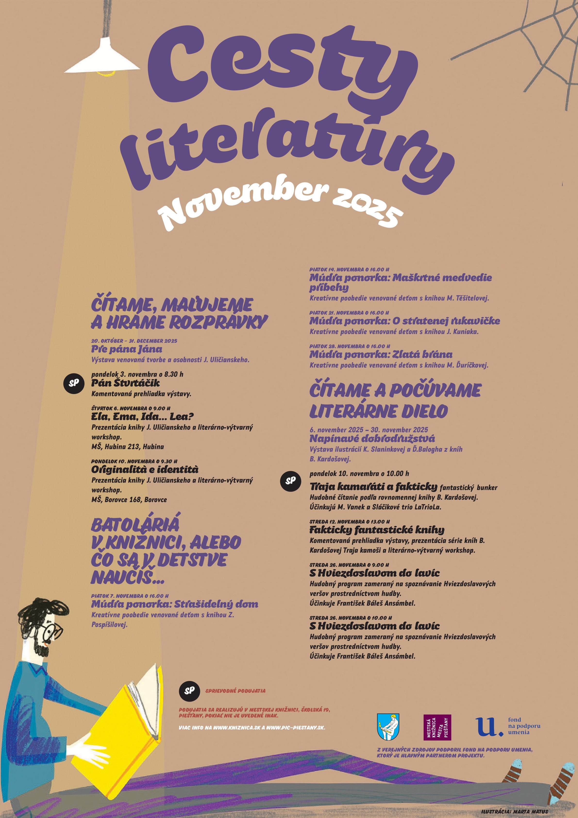 Milé knihomoľčatá, srdečne Vás pozývame na mimoriadne výnimočnú časť „preČÍnTAČIEK“, ktorá sa uskutoční dňa 23.09.2025 od 16 hod. v Kultúrnom dome v Prečíne. Navštívi vás neopakovateľný spevák, hudobník, spisovateľ a herec Braňo Jobus, ktorý vám bude hrať, čítať a rozprávať sa s vami o všetkom možnom aj nemožnom! Okrem veľkej zábavy na vás čaká aj losovanie o 3 krásne Braňove knižky. Celý projekt „preČÍnTANIE“ realizujeme vďaka podpore Fondu na podporu umenia. Ďakujeme.