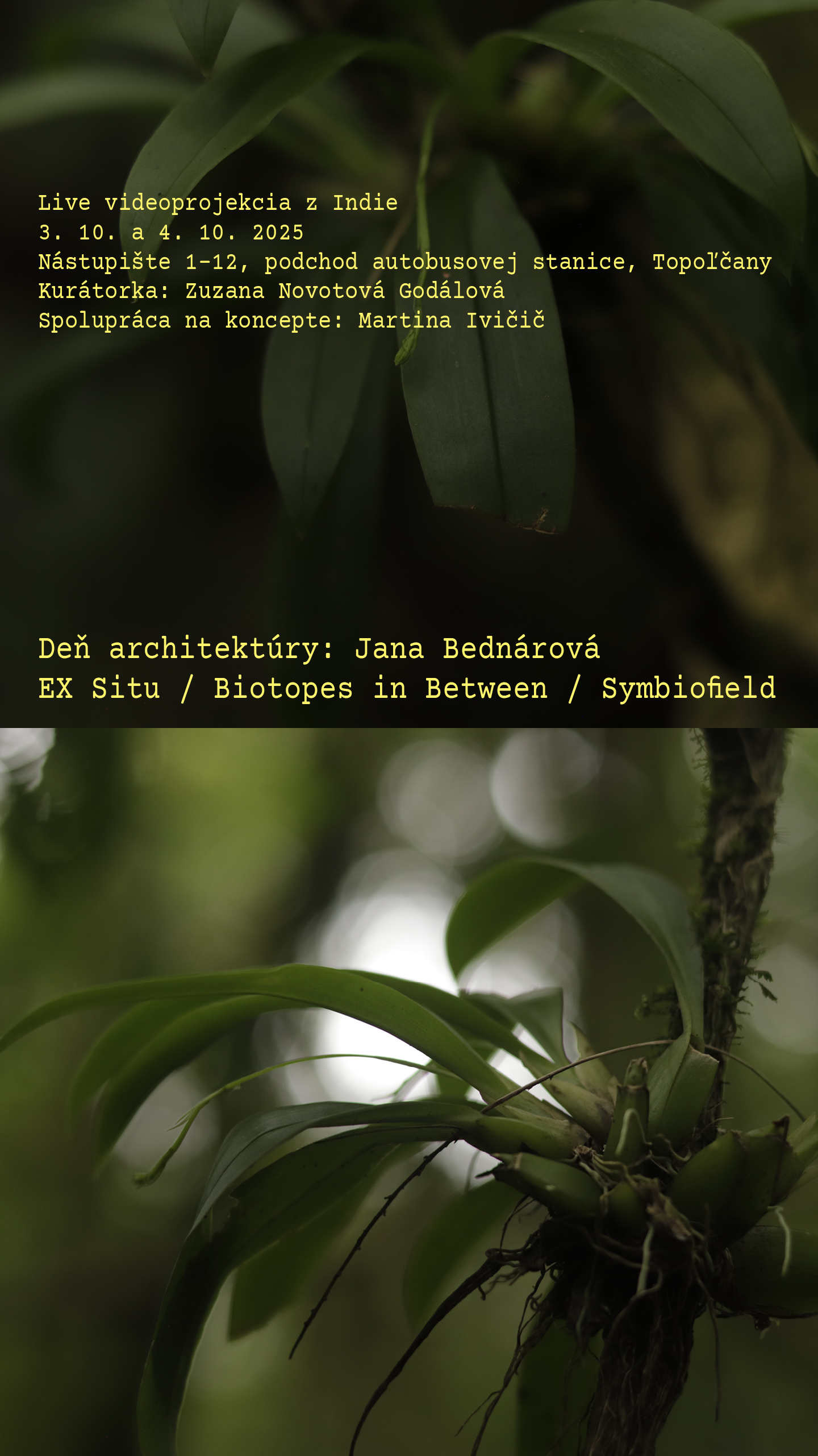 Deň Architekúry Topoľčany – Jana Bednárová EX Situ / Biotopes in Between / Symbiofield 3. 10. – 4. 10. | trvanie výstavy | Nástupište 1-12, podchod autobusovej stanice, Topoľčany