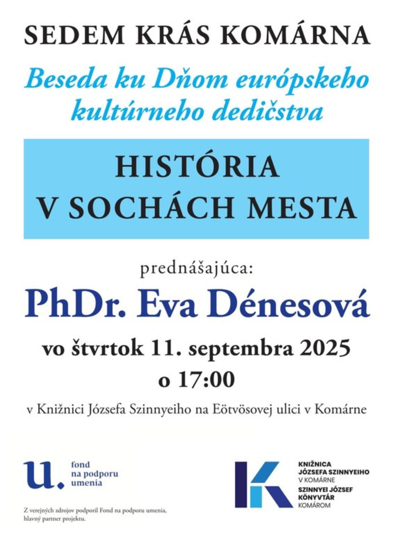 Pozývame vás na zaujímavú prednášku PhDr. Evy Dénesovej, historičky umenia, ktorá priblíži vznik, význam a príbehy sôch v Komárne. Dozviete sa, aké osobnosti a udalosti pripomínajú mestské sochy, ako sa menilo verejné umenie v priebehu rokov a akú úlohu zohrávajú sochári v tvorbe mestského prostredia.
