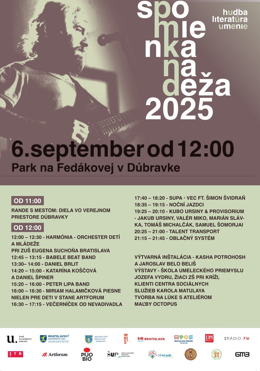 Komunitný festival Spomienka na Deža v Parku na Fedákovej v bratislavskej Dúbravke písal v septembri svoj ôsmy ročník. Festival mal viacero rovín a umeleckých foriem, jeho pilierom a podstatou je však hudba.