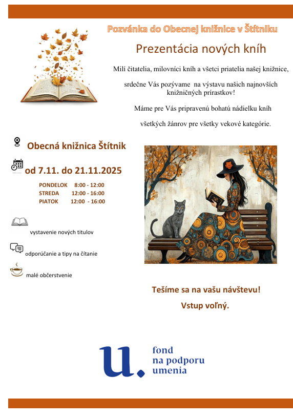 Krása kníh spočíva v ich pestrosti a rozmanitosti, tento projekt nám umožnil doplniť náš knižničný fond o 99 nových a zaujímavých titulov pre všetky vekové kategórie. Aktuálnymi novinkami chceme prispieť k podpore čítania, rozvoju čitateľských zručností a návykov u detí, mládeže ale aj dospelých.