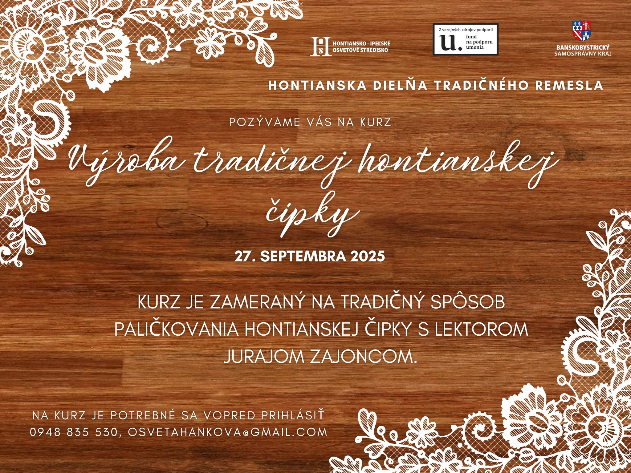 Hontianska dielňa tradičného remesla zameraná na výrobu tradičnej hontianskej čipky.