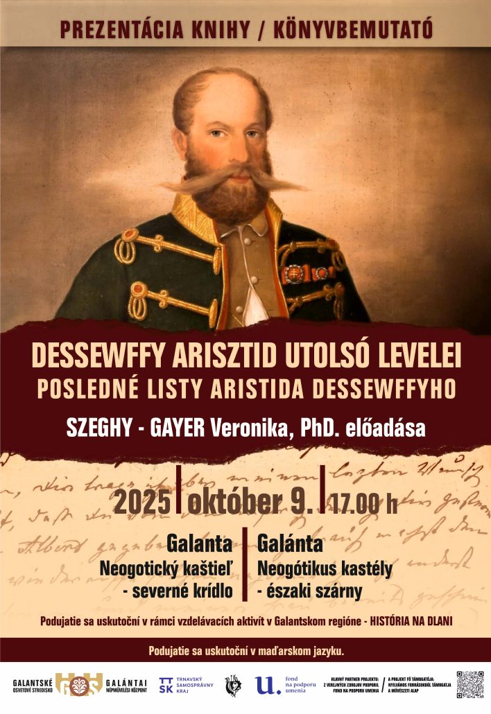 Galantské osvetové stredisko v rámci série podujatí pod názvom História na dlani organizuje dňa 9. októbra 2025 vzdelávacie podujatie s predstavením knihy Posledné listy Aristida Dessewffyho. Podujatie sa uskutoční v severnom krídle Neogotického kaštieľa v Galante. Podujatie z verejných zdrojov podporil Fond na podporu umenia, ktorý je aj hlavným partnerom podujatia.