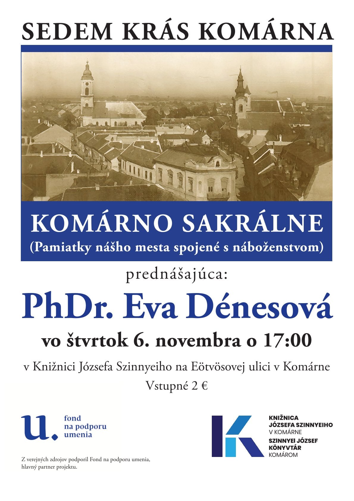 Srdečne vás pozývame na prednášku venovanú komárňanským kostolom, ich histórii, architektúre a duchovnému odkazu. Návštevníci sa dozvedia, ako vznikali jednotlivé chrámy, aké slohy a umelecké prvky ich formovali a akú úlohu zohrávali v živote mesta. Prednáška priblíži aj menej známe zaujímavosti a príbehy spojené s chrámovými stavbami.