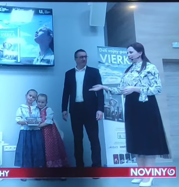 NOVINY (Hlavné spravodajstvo) TV JOJ, 29. november 2025 – po 26. minúte reportáž z uvedenia knihy DETI VOJNY-POVOJNY: VIERKA v Kysuckej knižnici a rozhovor s riaditeľkou knižnice a starostom Zborova nad Bystricou. V pozadí vidieť rollupy a obrazovku s logom FPÚ.