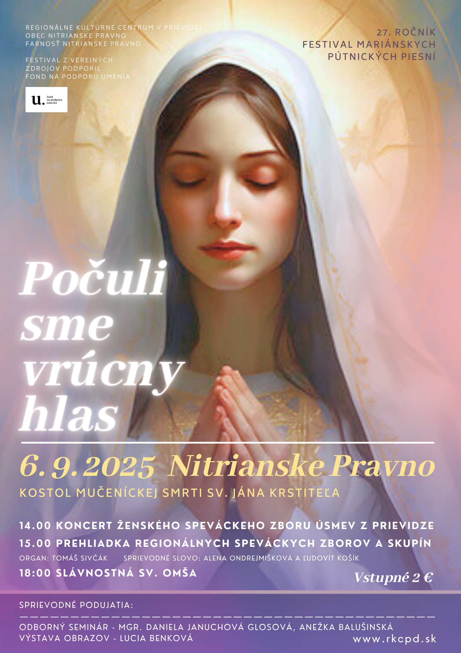 Počuli sme vrúcny hlas je názov festivalu mariánskych pútnických piesní, ktorého cieľom je zachovávať piesne spojené s významnými mariánskymi tradíciami na Slovensku, piesne spievané na oslavu Panny Márie, patrónky Slovenska a prispievať prostredníctvom duchovnej piesne, ale aj sprievodných podujatí – výstavy s náboženskou tematikou a výberom duchovnej poézie k šíreniu duchovných hodnôt.