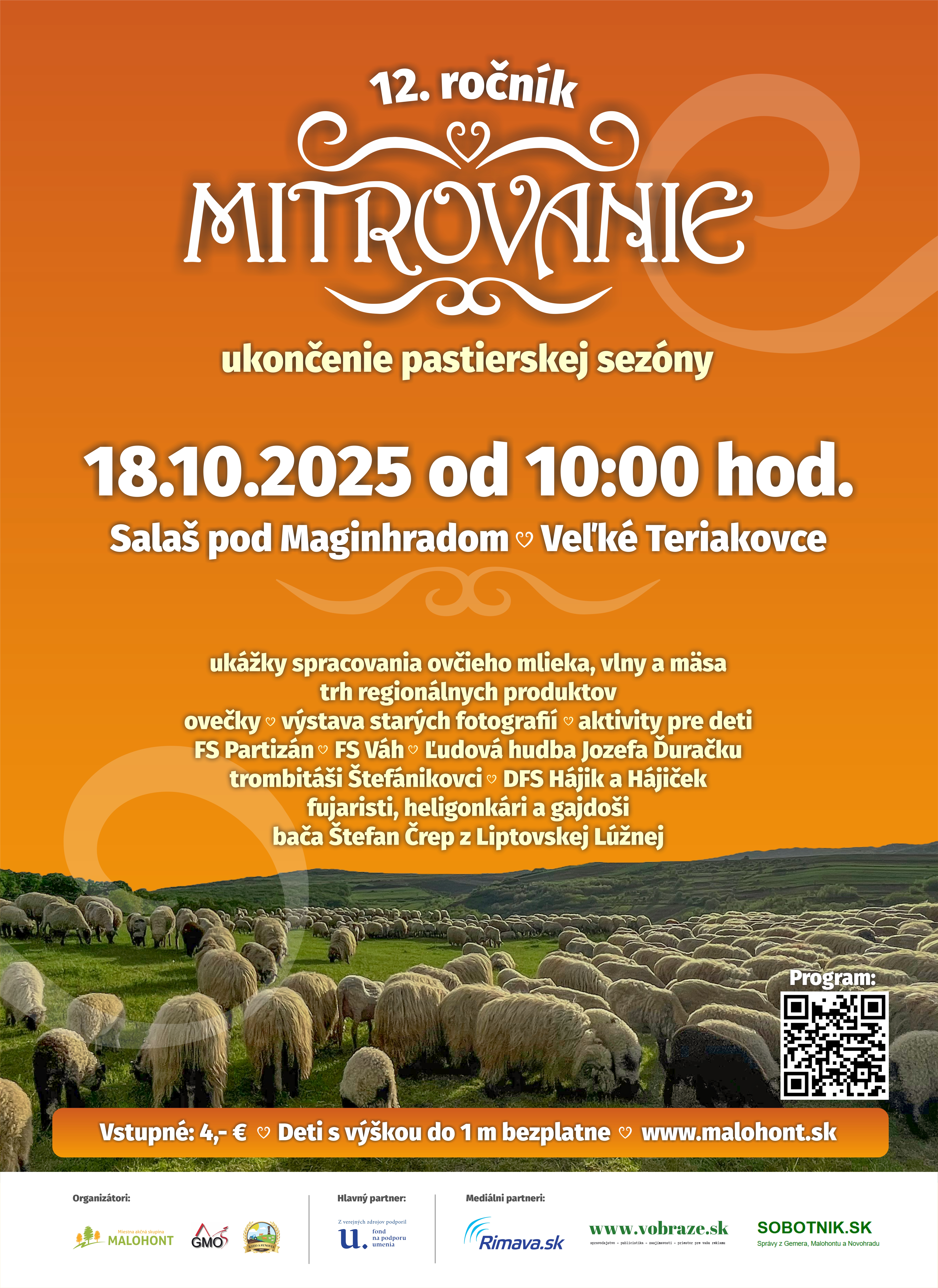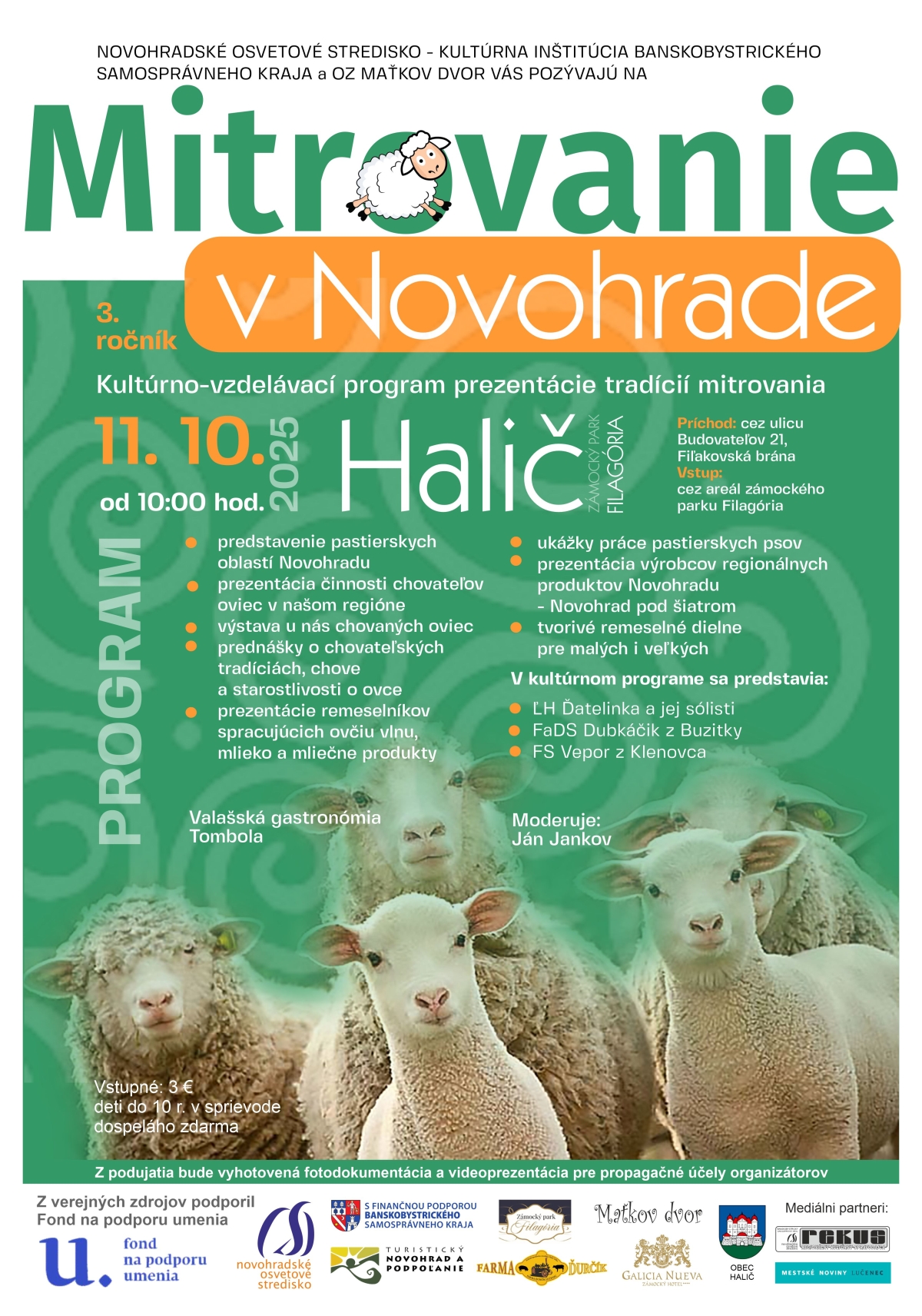 Kultúrno-vzdelávacií program prezentácie regionálnej tradičnej kultúry a zvykoslovia na tému "Mitrovanie v Novohrade". Na programe sú tematické prednášky , prezentácie práce ovčiarov, či spracovania ovčiarskych produktov. Pripravené sú folklórne vstupy, prezentácia remeselníkov i tvorivé dielne pre návštevníkov.