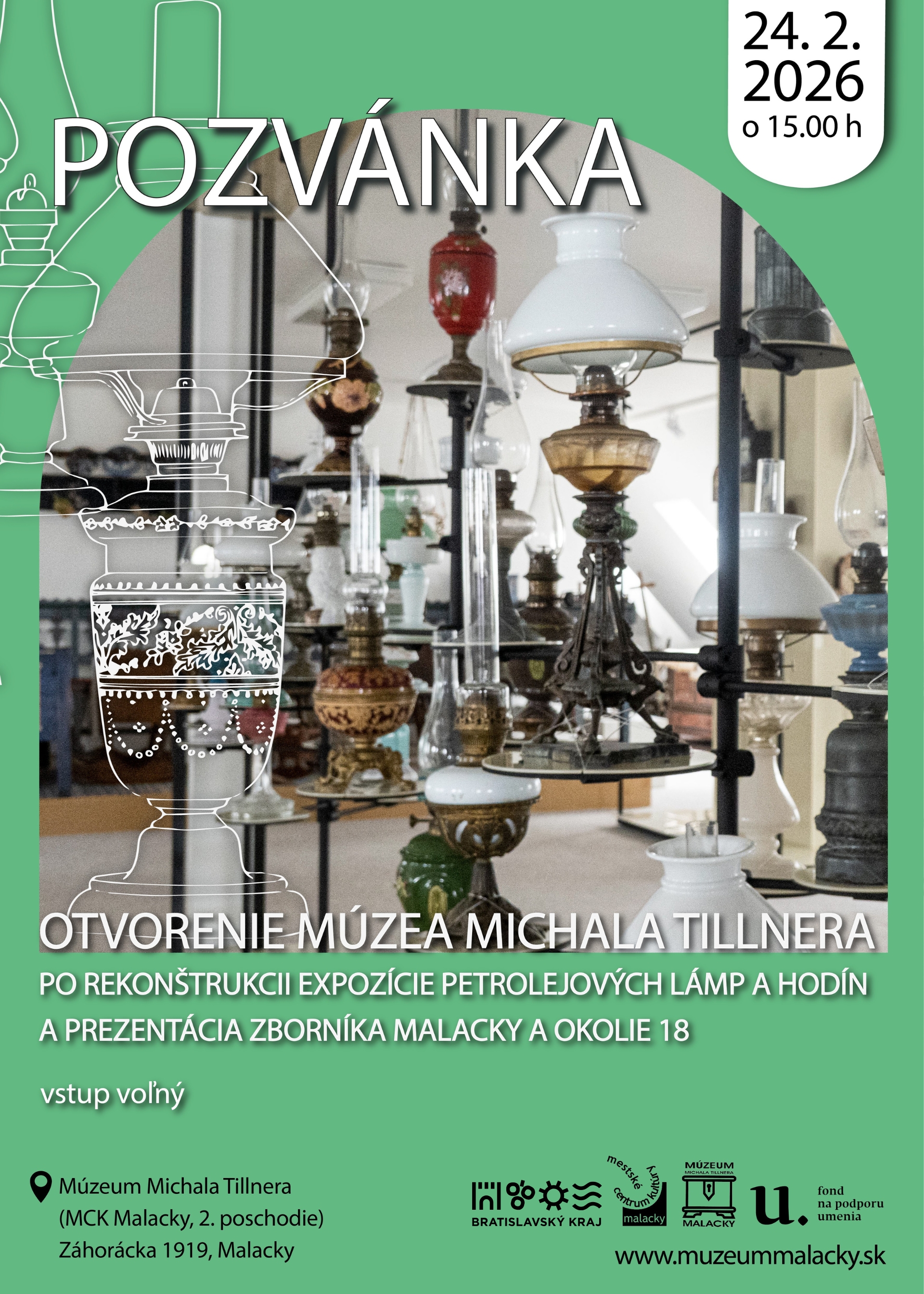 Po zrealizovaní projektu Modernizácia stálej expozície Múzea Michala Tillnera (v roku 2025) slávnostne otvoríme expozíciu v novej podobe za účasti realizátorov. Súčasťou podujatia bude prezentácia nového muzeálneho zborníka. 24. februára 2026 o 15.00 h v priestoroch múzea, Záhorácka 1919, Malacky.