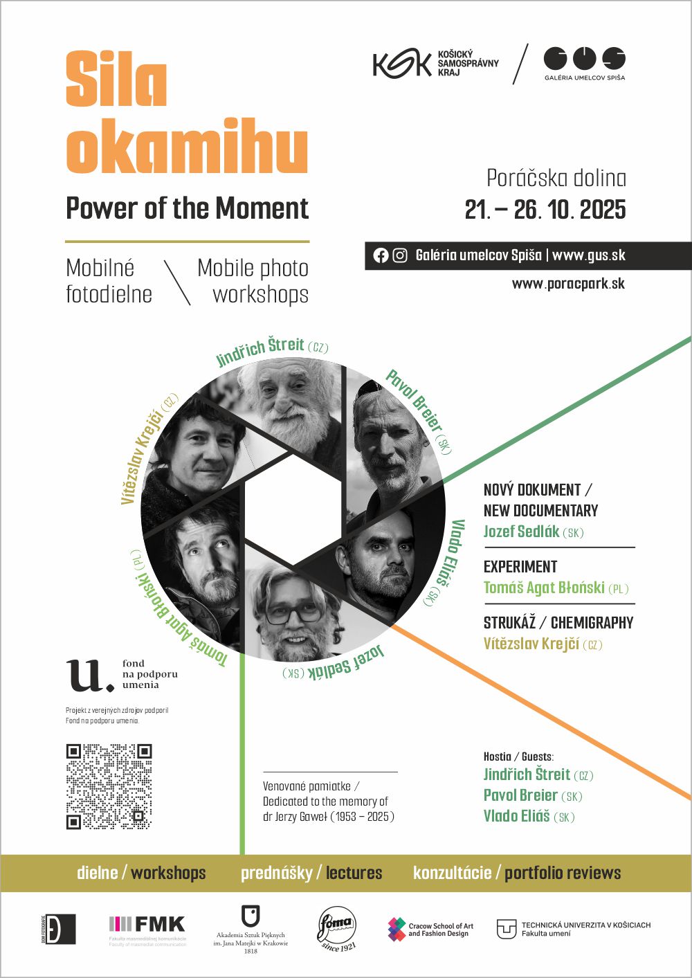 Workshopy, prednášky a konzultácie v Poráčskej doline. Lektori: J. Sedlák, T. A. Błoński (PL), V. Krejčí (CZ), P. Breier, J. Štreit (CZ), V. Eliáš, L. Benická (GUS). Projekt z verejných zdrojov podporil Fond na podporu umenia.
